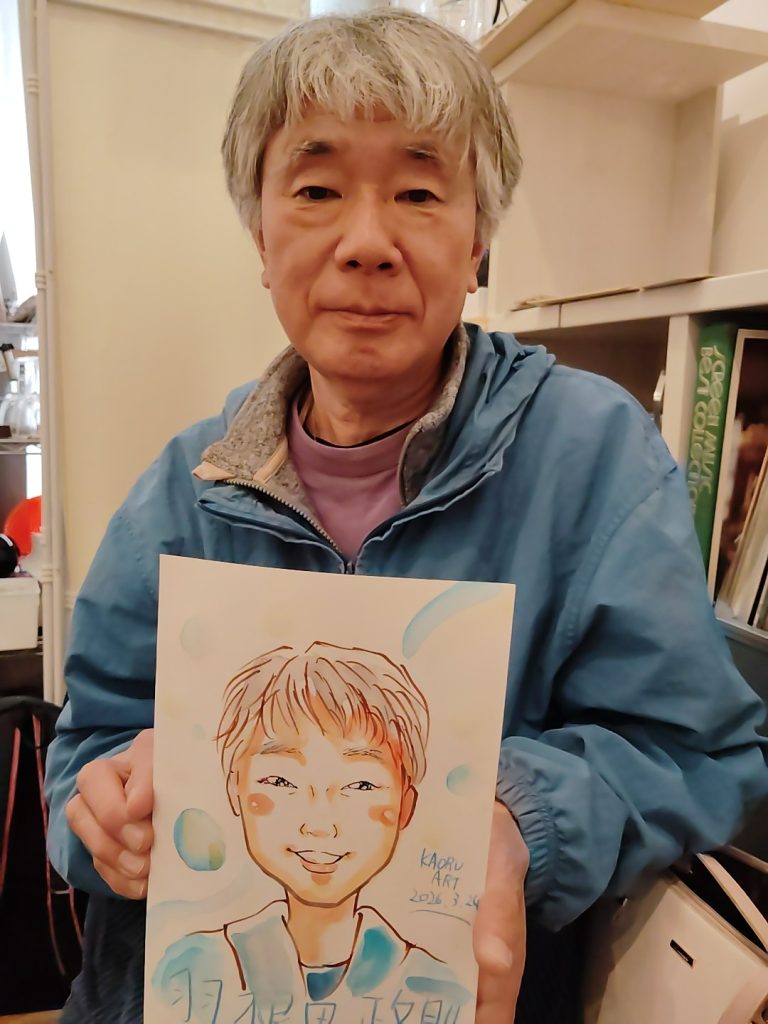また、経営者の運気を、静かに整える開運ヒーリングをされている羽根田 政則のさっくり似顔絵を描かせていただきました✨✨